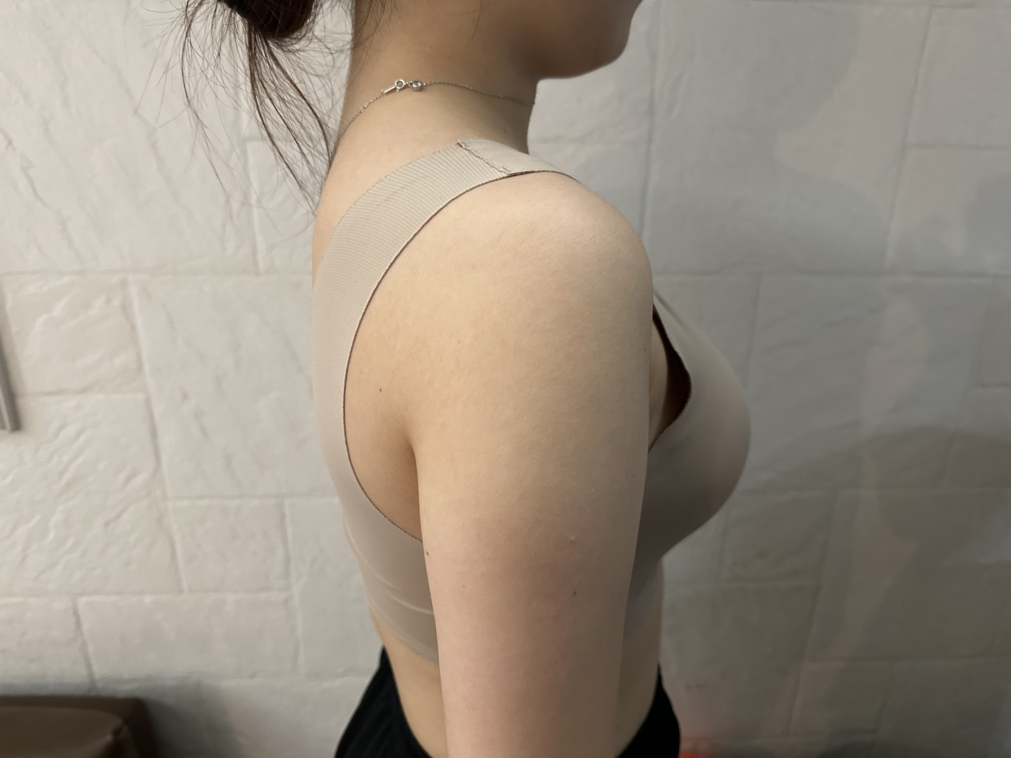 Tầm 3 tháng rồi nên dáng ngực nhìn ổn định rõ rệt. Lúc đầu mình thấy ngực hơi cao một chút, nhưng giờ đã xuống tự nhiên hơn, tổng thể nhìn mềm mại và hài hòa. Khi soi gương cũng không hề có cảm giác giả hay gượng ép, mà giống như mình vốn dĩ đã có dáng ngực như vậy.