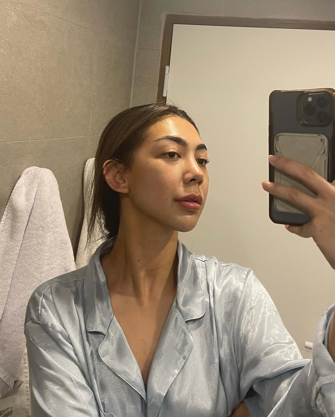 Phần cấy mỡ ở trán bây giờ đã ổn định hoàn toàn, gương mặt nhìn mềm mại hơn, có chiều sâu nhưng vẫn giữ nét thanh lịch. Vùng dưới mắt thì giờ tự nhiên lắm luôn, nhìn như chưa từng có quầng thâm hay bọng mắt trước đây.